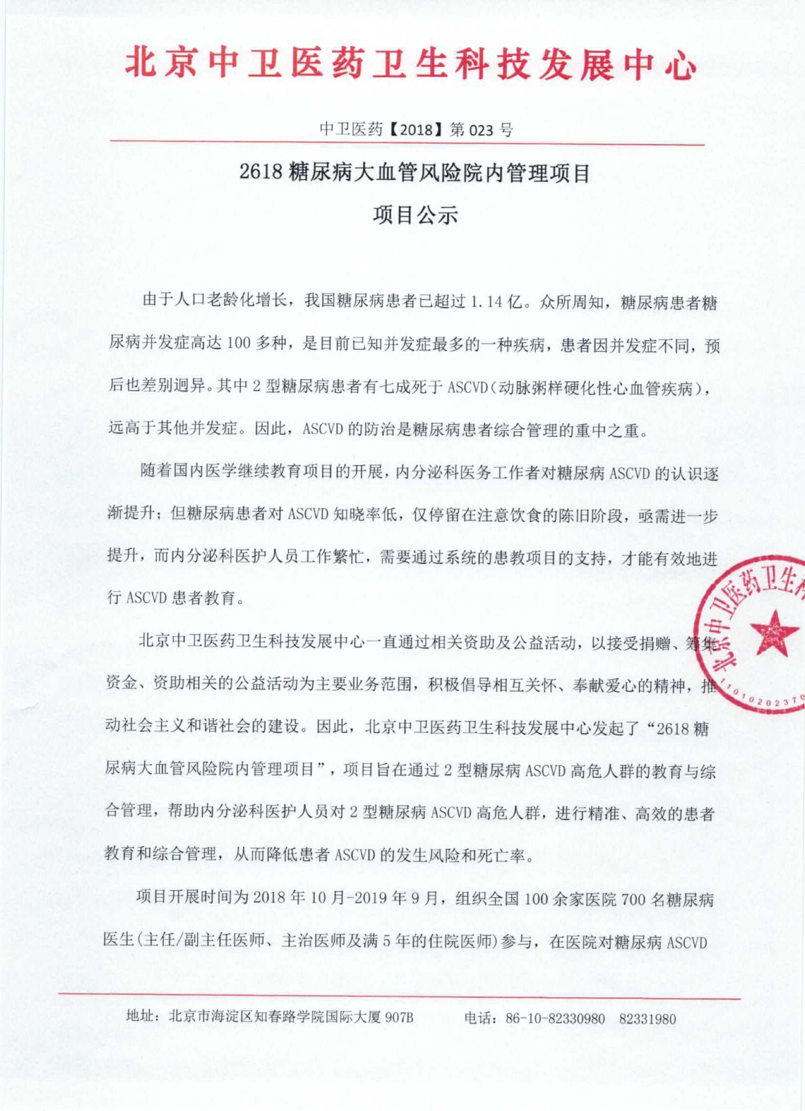 | 《2618糖尿病大血管风险院内管理项目》项目公示 | |||||