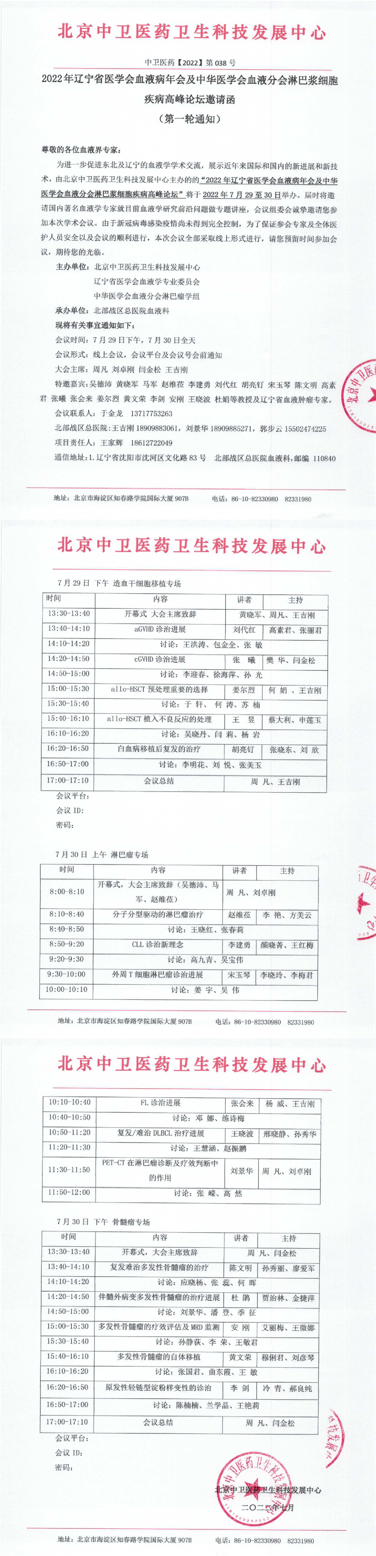 | 2022年辽宁省医学会血液病年会及中华医学会血液分会淋巴浆细胞疾病高峰论坛-邀请函 | |||||
