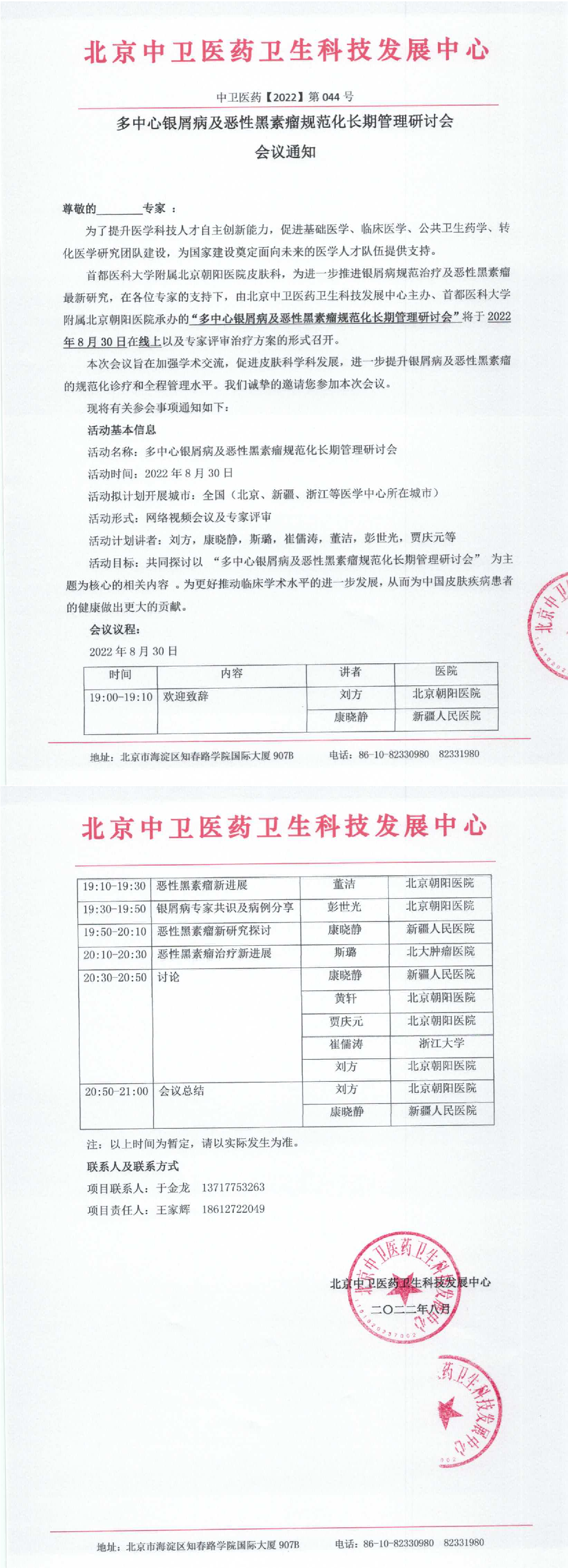 | 多中心银屑病及恶性黑素瘤规范化长期管理研讨会 会议通知 | |||||