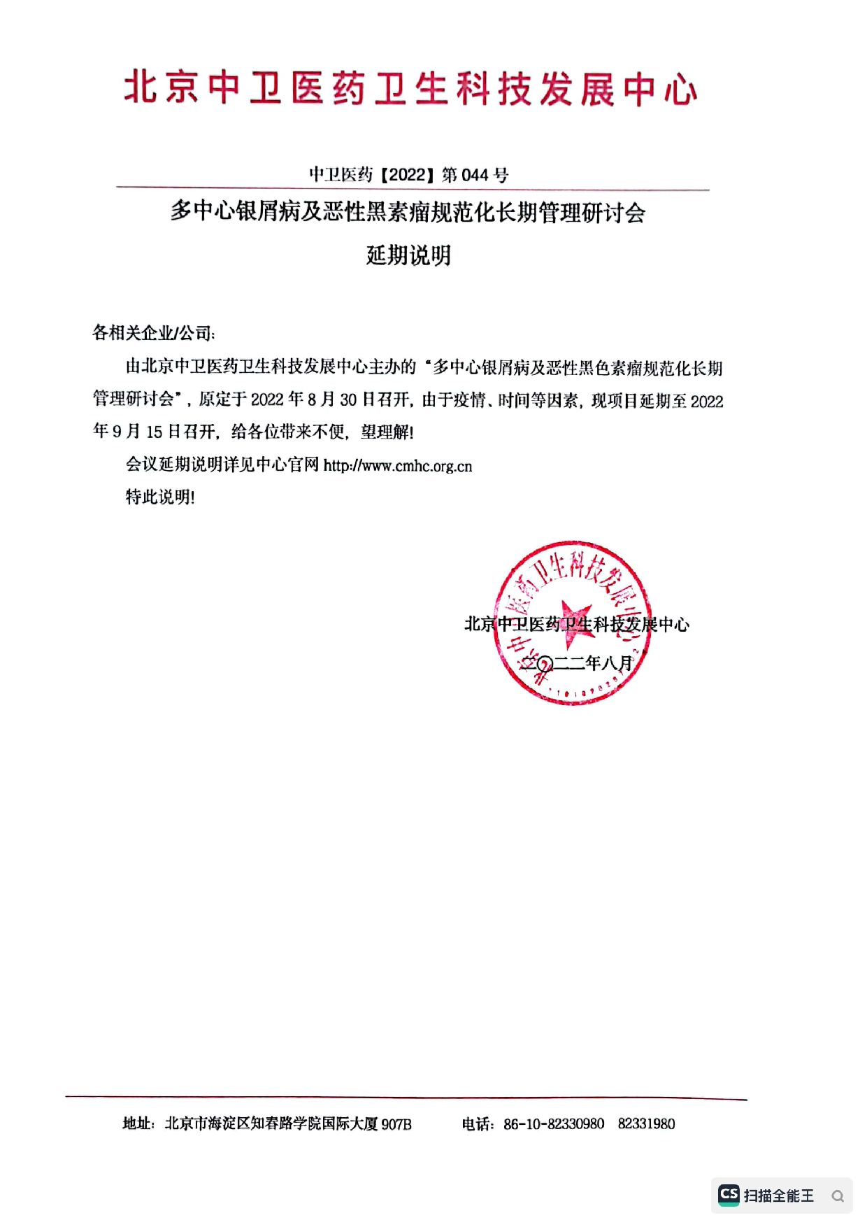 | 多中心银屑病及恶性黑素瘤规范化长期管理研讨会 延期说明 | |||||