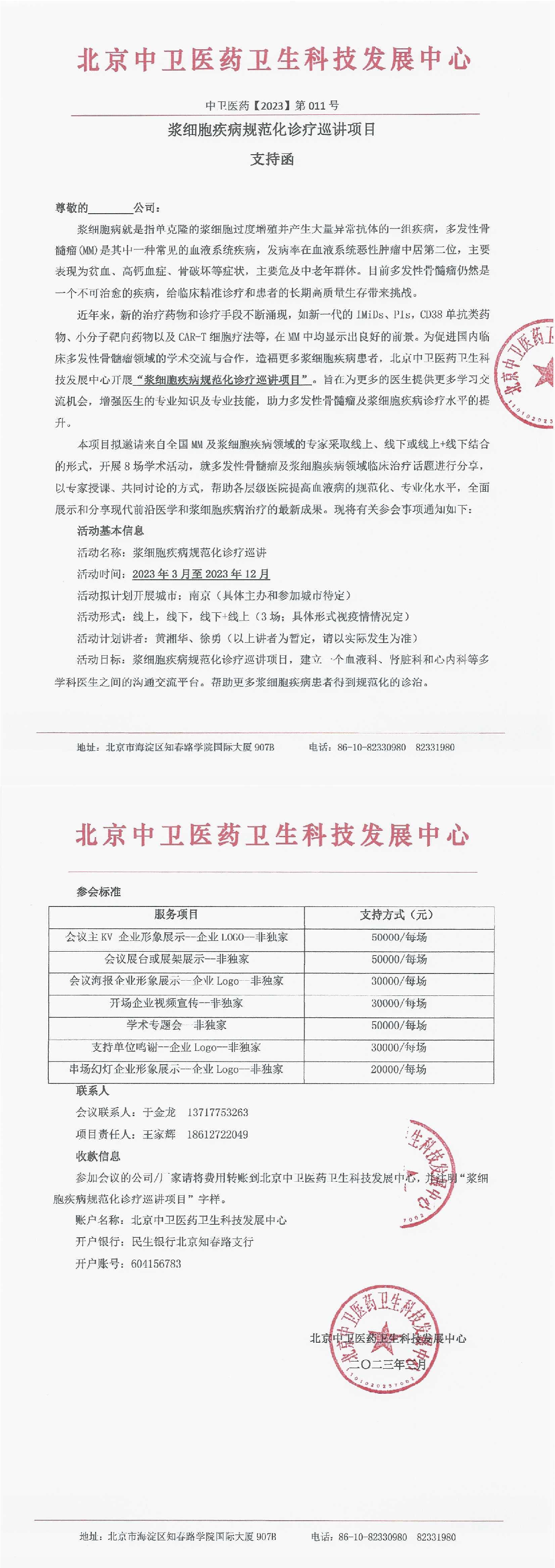 | 浆细胞疾病规范化诊疗巡讲项目支持函 | |||||