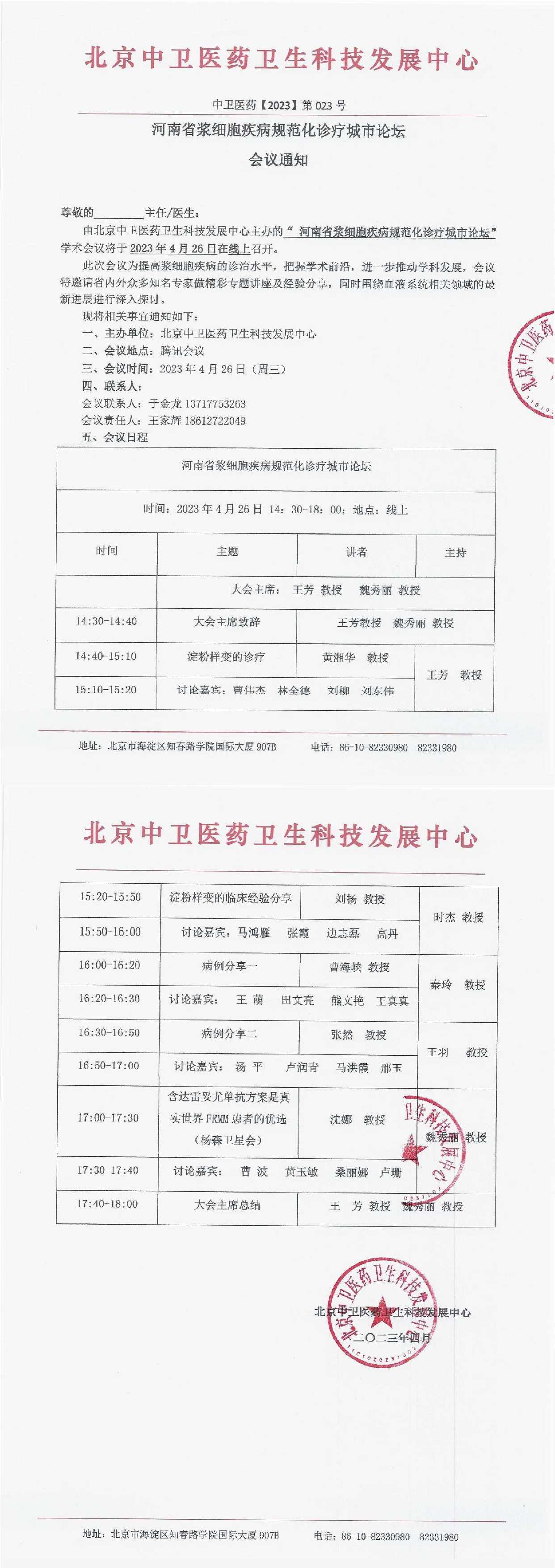 | 河南省浆细胞疾病规范化诊疗城市论坛 会议通知 | |||||