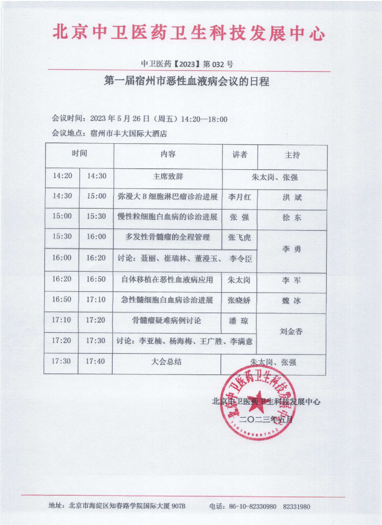 | 第一届宿州市恶性血液病会议日程 | |||||