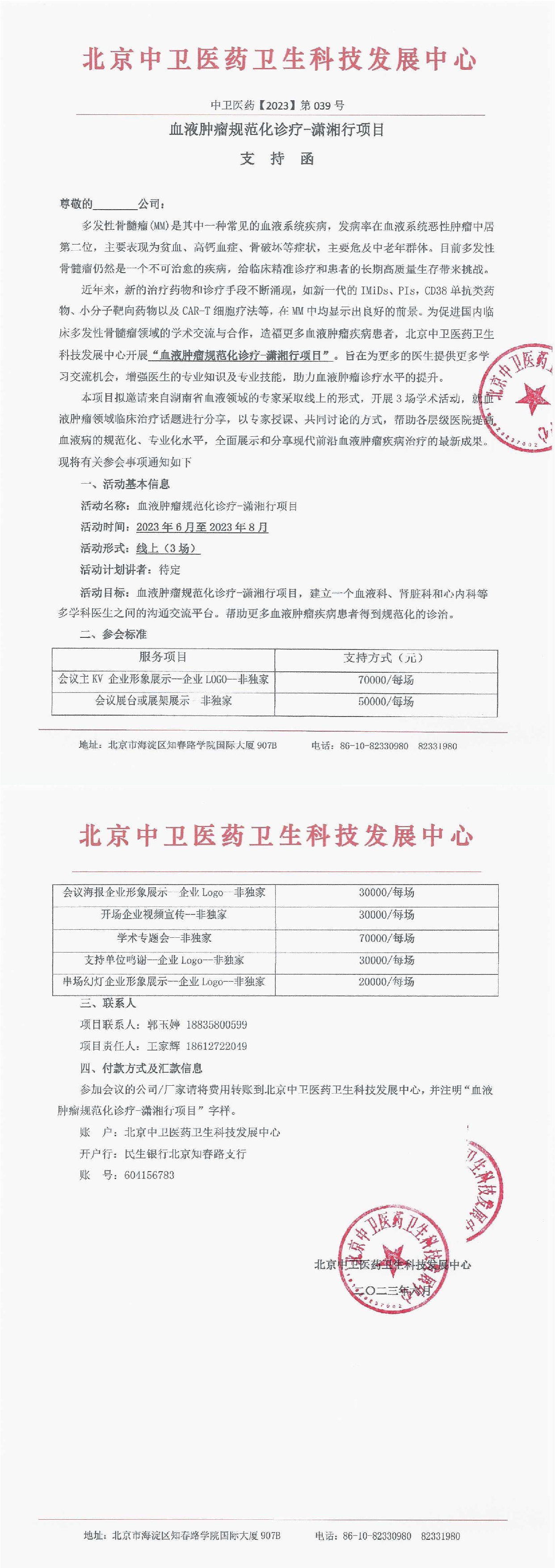 | 血液肿瘤规范化诊疗-潇湘行项目 支持函 | |||||