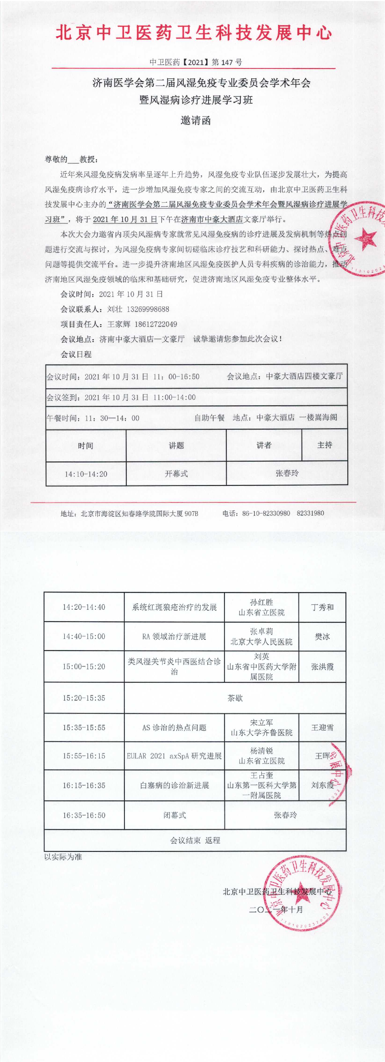 | 济南医学会第二届风湿免疫专业委员会学术年会暨风湿病诊疗进展学习班 邀请函 | |||||