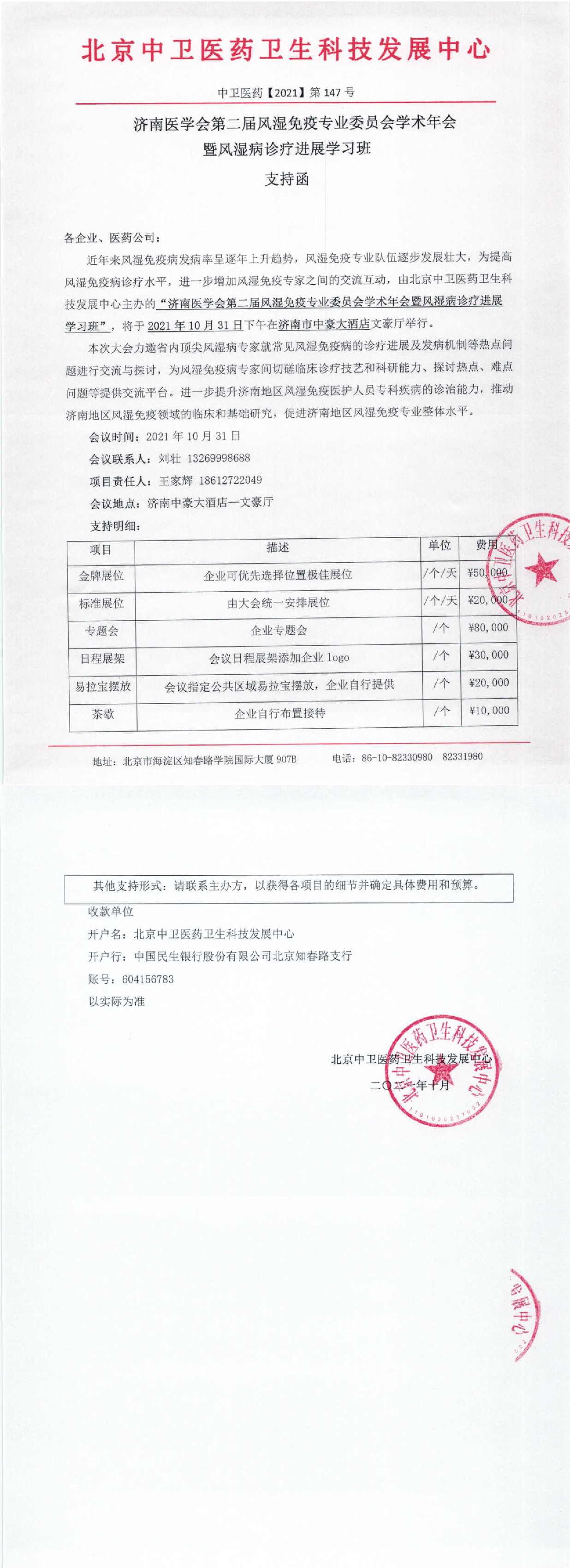 | 济南医学会第二届风湿免疫专业委员会学术年会暨风湿病诊疗进展学习班 支持函 | |||||